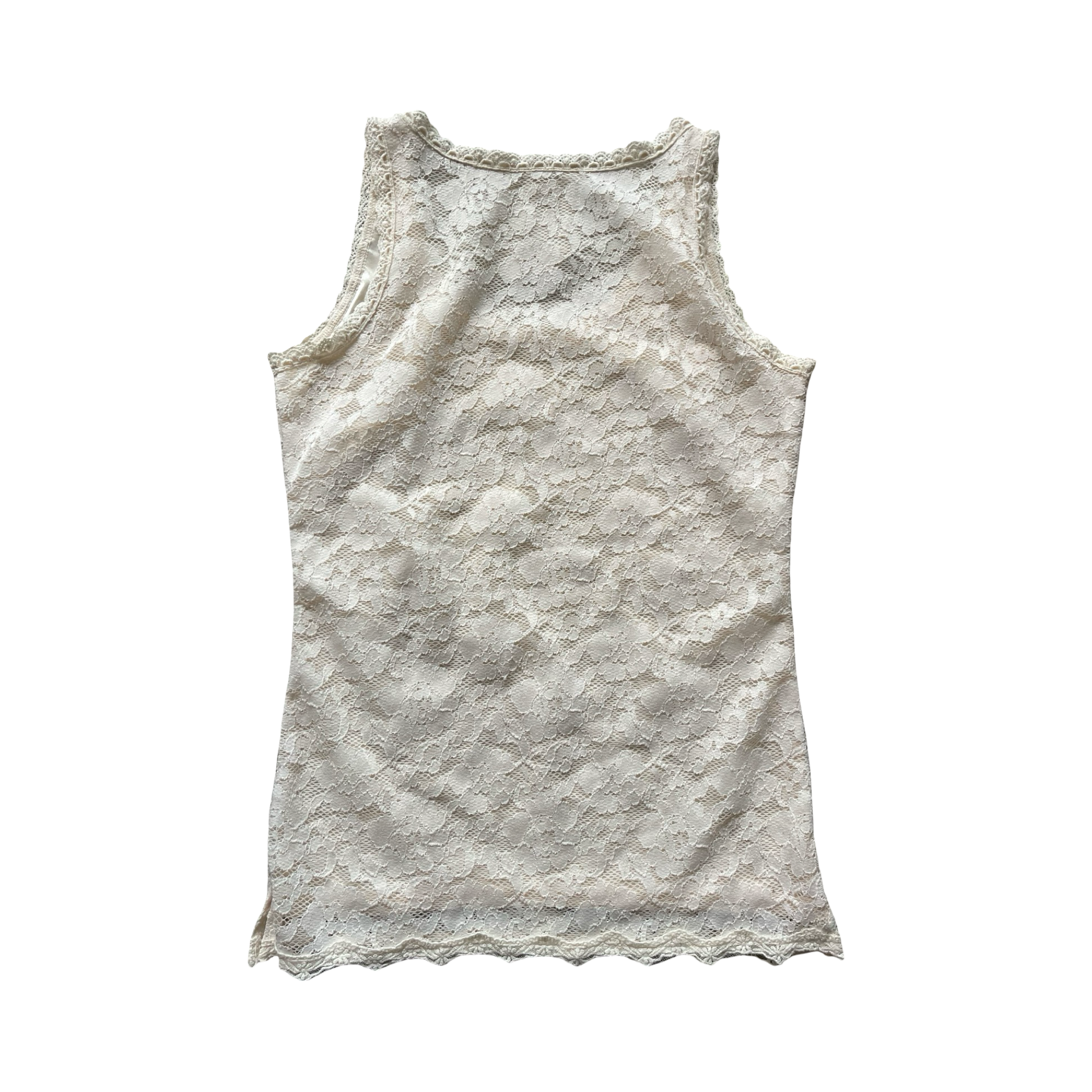Lace broderie tank top with silky lining underneath.